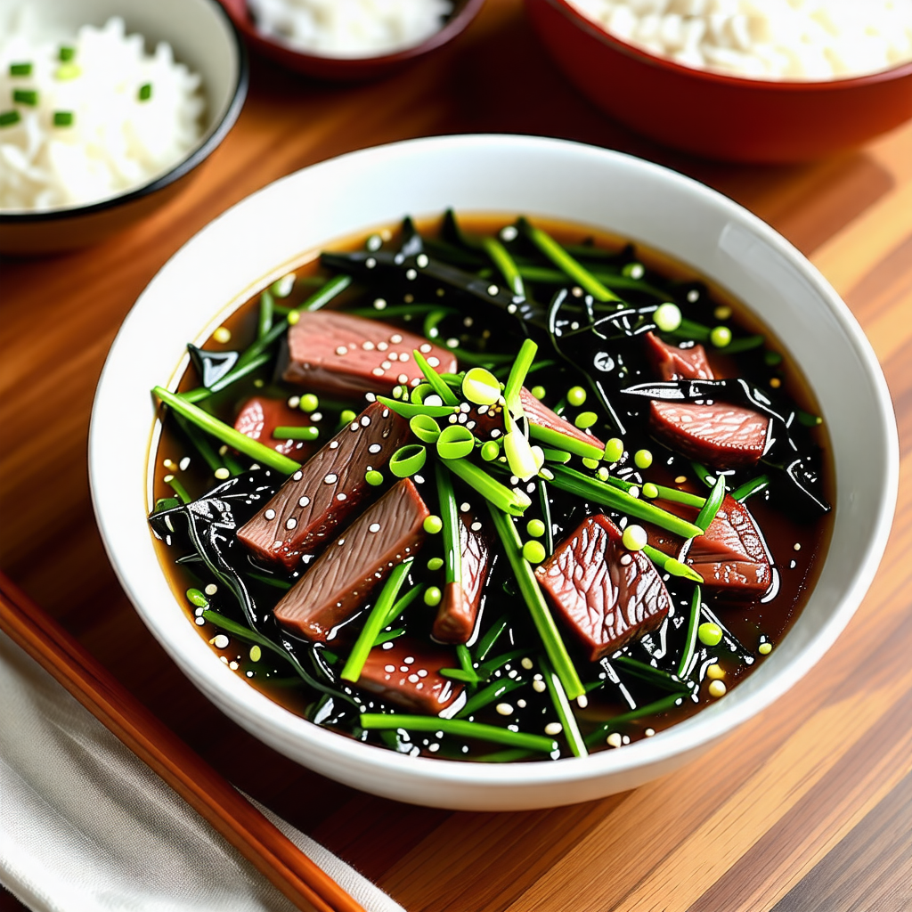 먼저 미역을 차가운 물에 30분 정도 불려서 부드럽게 만들어 줍니다. 불린 미역은 물기를 제거하고 적당한 크기로 자릅니다. 소고기는 핏물을 제거하고 한입 크기로 썰어줍니다. 이렇게 손질된 재료들은 훨씬 더 맛있게 요리되기 위한 준비 과정입니다.