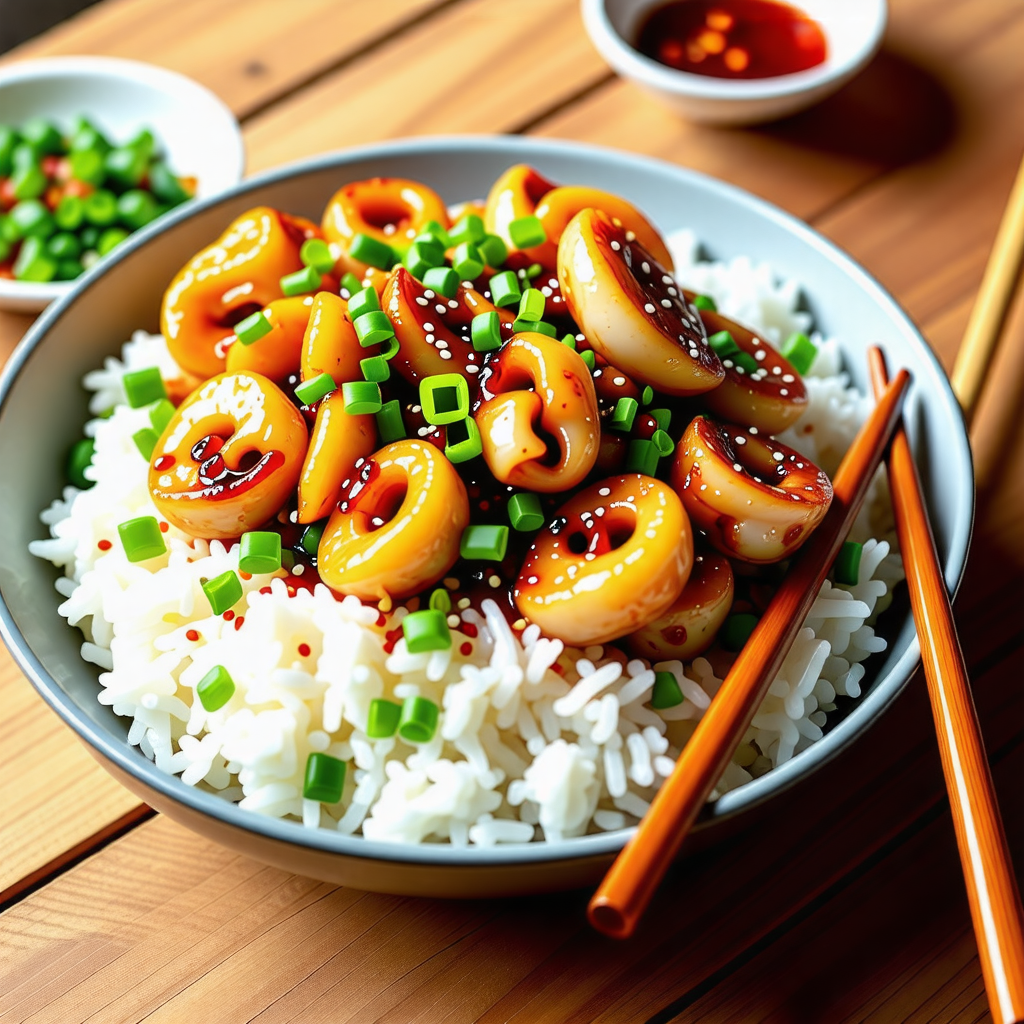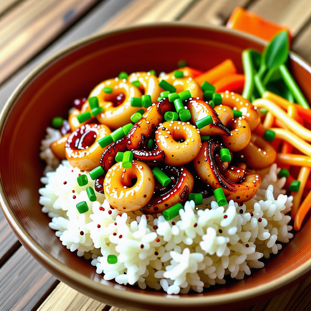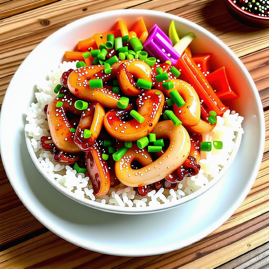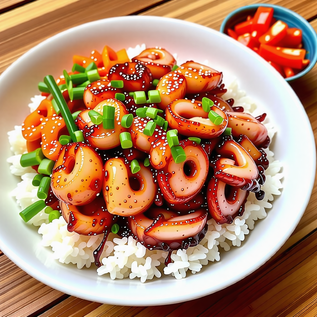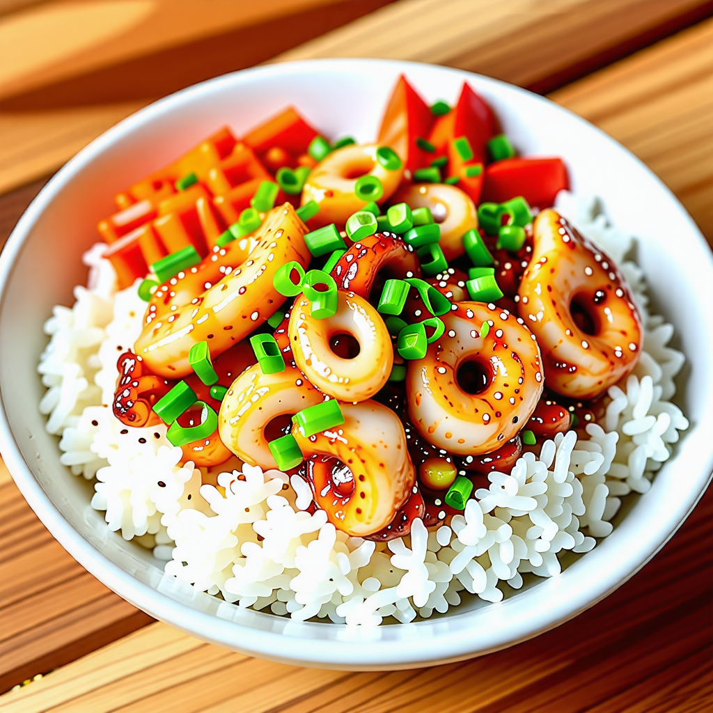 오징어 덮밥은 신선한 오징어와 다양한 채소가 어우러져 풍부한 맛을 자랑합니다. 매콤한 양념이 밥과 잘 어우러져 한 그릇으로도 충분한 만족감을 줍니다. 특히, 오징어는 단백질이 풍부하고 저칼로리 식품으로 건강에도 좋습니다.